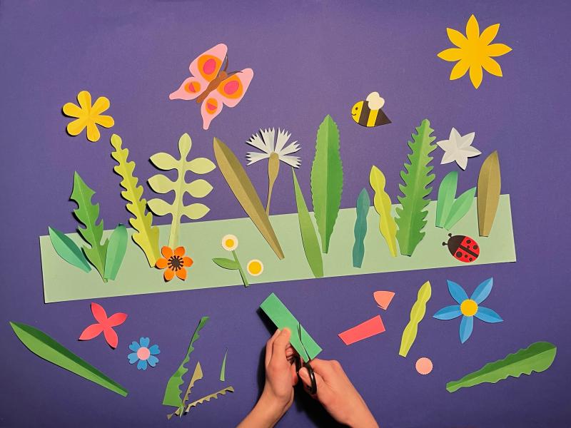 Kunstværkstedet er inspireret af området Blomsterengen fra udstilingen "Venner med Naturen", der vil være på Hillerød Børnebibliotek fra februar til april.